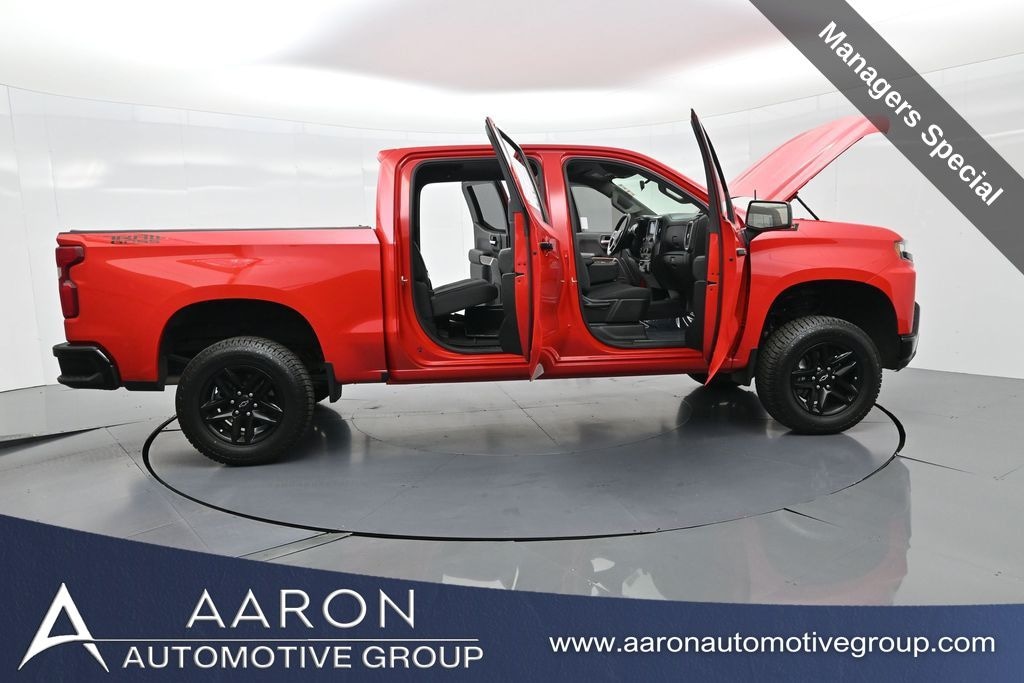 This 2020 Chevrolet Silverado 1500 LT Trail Boss Crew Cab 4x4 in eye-catching Red Hot delivers rugged off-road capability, full-size truck utility, and everyday comfort. Powered by the robust 5.3L EcoTec3 V8 paired with a smooth-shifting 10-speed automatic transmission, its equipped to handle heavy loads, challenging terrain, and long highway hauls with ease. The Trail Boss package adds Z71 off-road suspension with Rancho shocks, skid plates, hill descent control, a two-speed transfer case, and Goodyear Wrangler Duratrac off-road tires mounted on painted aluminum wheels. Its bold exterior is accented by black badging, recovery hooks, LED signature lighting, dual exhaust with polished tips, and a factory spray-in bedliner for durability. Inside, the Jet Black cabin offers heated front seats, a heated steering wheel, dual-zone automatic climate control, and a Chevrolet Infotainment 3 system with 8-inch touchscreen, Apple CarPlay, Android Auto, Bluetooth, and 4G LTE Wi-Fi hotspot capability. Additional convenience features include a remote start system, rear window defogger, rear seat storage package, trailer brake controller, and multiple USB ports. Safety is supported by a rear vision camera, tire pressure monitoring, StabiliTrak stability control, and Teen Driver mode. With 48,033 miles, a clean CARFAX history, and documented service records, this Silverado LT Trail Boss is in excellent condition and ready for its next adventure. Combining the comfort and technology you want with the off-road prowess you need, this Trail Boss is equally at home on job sites, trails, or the open road. Come see how it can work and play as hard as you do.